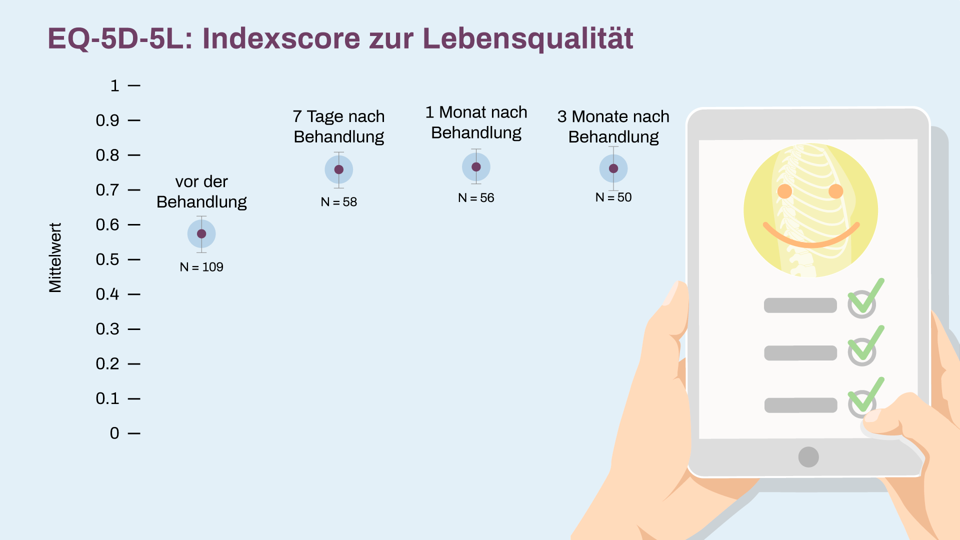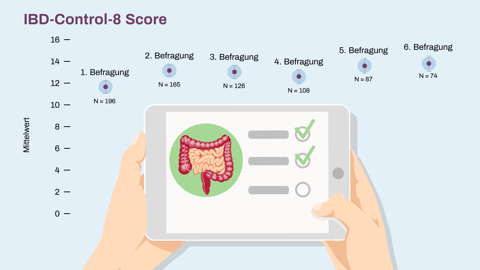 Der Score kann dabei einen Wert zwischen 0 und 16 annehmen, wobei ein höherer Wert für eine bessere Kontrolle der Darmerkrankung steht. Das Ziel bei der Behandlung chronisch erkrankter Patientinnen und Patienten ist es, die Krankheitsaktivität durch die Therapie niedrig und die Kontrolle über die Erkrankung auf einem möglichst hohen stabilen Niveau zu halten.